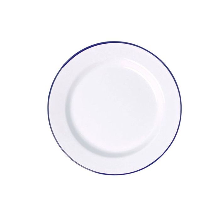 Meals will be that much more appealing when consumed from this striking Enamel Dinner Plate from Falcon. The 26cm dish is striking in its simplicity, with its predominantly bright white aesthetic contrasted by a blue outer rimming that pops fantastically.