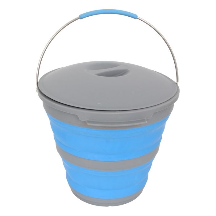 A tough and durable bucket with a rigid frame for strength, and flexible walls for easy collapsing when storing after use.