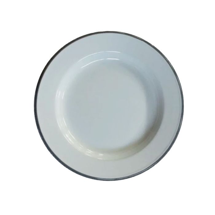 Meals will be that much more appealing when consumed from this striking Enamel Dinner Plate from Falcon. The 26cm dish is striking in its simplicity, with its predominantly bright white aesthetic contrasted by a blue outer rimming that pops fantastically.