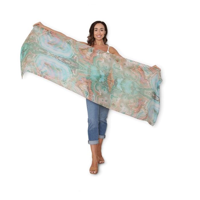 More details: Lightweight design, easy to carry around, rectangle shape, hand designed by a real artist. All scarves come in a gift box.