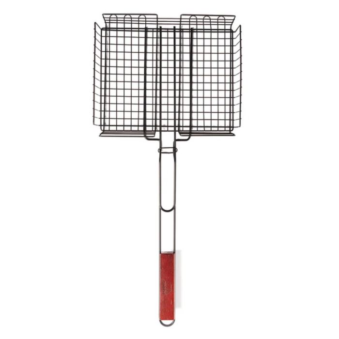 This enamel-coated, non-stick steel grill basket is crafted for effortless BBQ grilling. With a long wooden handle, it’s perfect for cooking burgers and steaks, making outdoor grilling more convenient.