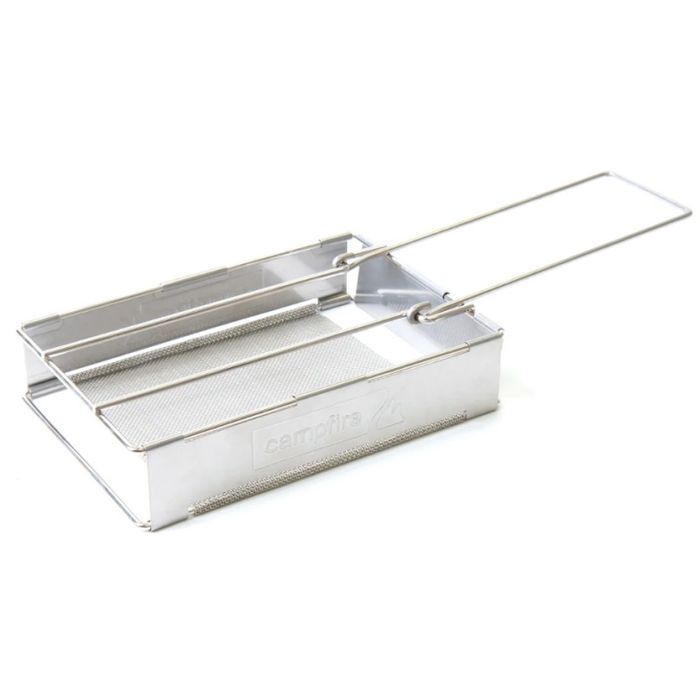 This stainless steel toaster folds down for easy storage and portability, ideal for camping.