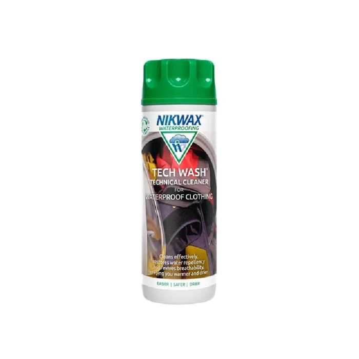 Nikwax Tech Wash® will revitalise existing Durable Water Repellency (DWR) and revive breathability. It is the safe way to thoroughly clean your waterproof clothing and equipment. Application in a washing machine is quick, easy, and ensures that the whole garment is thoroughly cleaned.
