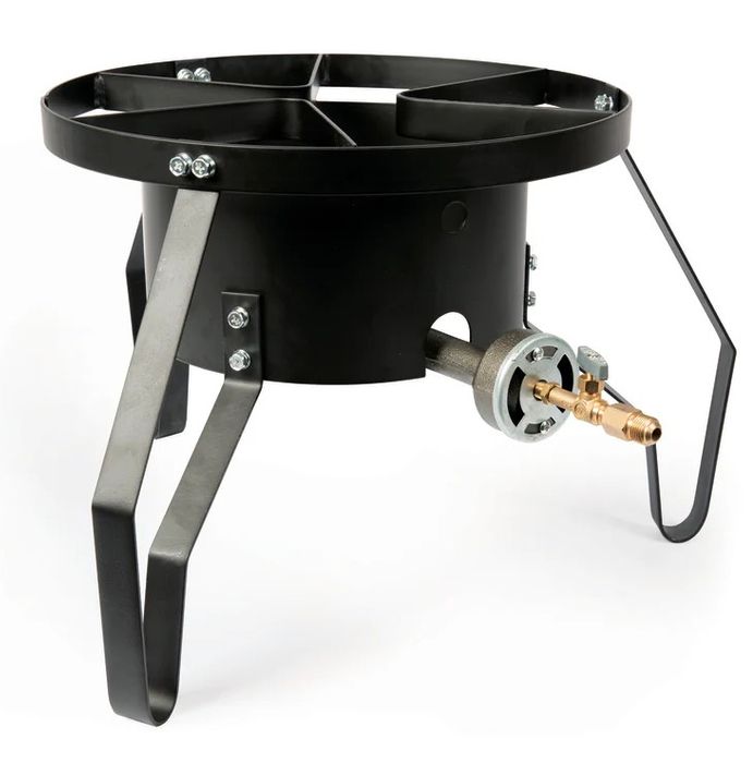 The Mega-Jet Cooker is a high-output, cast iron burner designed for large pots and fast cooking. Perfect for boiling, seafood cooking, or large gatherings, it can heat a 30L pot of water in 40 minutes.