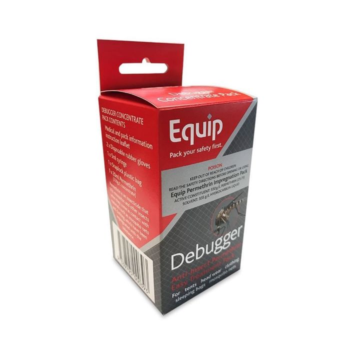 The Equip DeBugger enables you to treat any material with permethrin. If you require maximum insect protection, you require this product! Suitable for treating clothing, nets, bed sheets and gear. Permethrin is an insecticide that kills mosquitoes and other insects when they come in contact with materials have been impregnated with the substance.