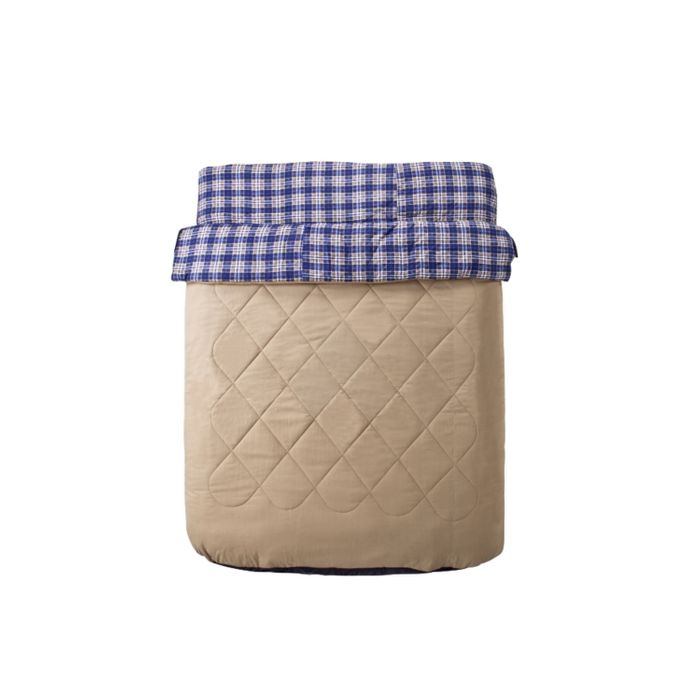 The complete camp bedding in a bag, tailored to fit snuggly onto your queen camping mattress. With a flannel cotton lining, an all-cotton outer cover and 300gsm polyester filling quilted into position to ensure even distribution and warmth.